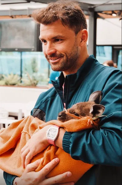 Заедно с други тенис звезди Гришо посети зоологическа градина, където се докосна до малко кенгуру, крокодил и дори симпатична коала, с която си размени ескимоска целувка.